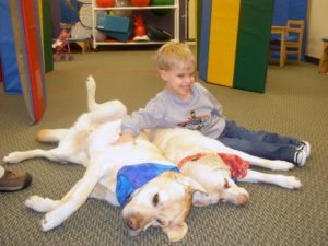 Many of the children with whom we work have not been reached by traditional forms of instruction and therapy. By taking advantage of the unique bond between children and dogs we provide the needed motivation for a child to continue working toward the accomplishment of his or her goals and independence.